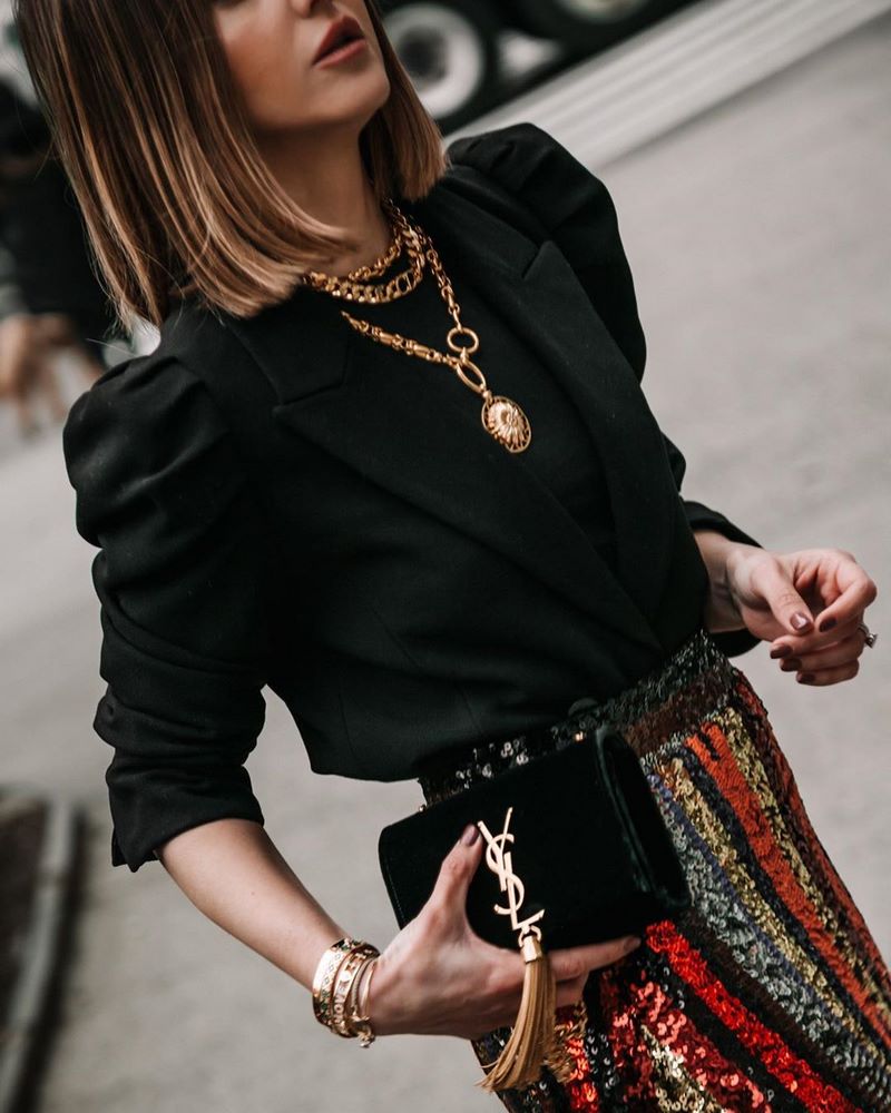 Прелесть изделия в том, что оно уместно как в повседневности, так и на вечерних мероприятиях. Сумка на цепочке сама по себе аксессуар, заменяющий определённую часть украшений и должна выгодно дополнять любые ювелирные изделия или бижутерию.